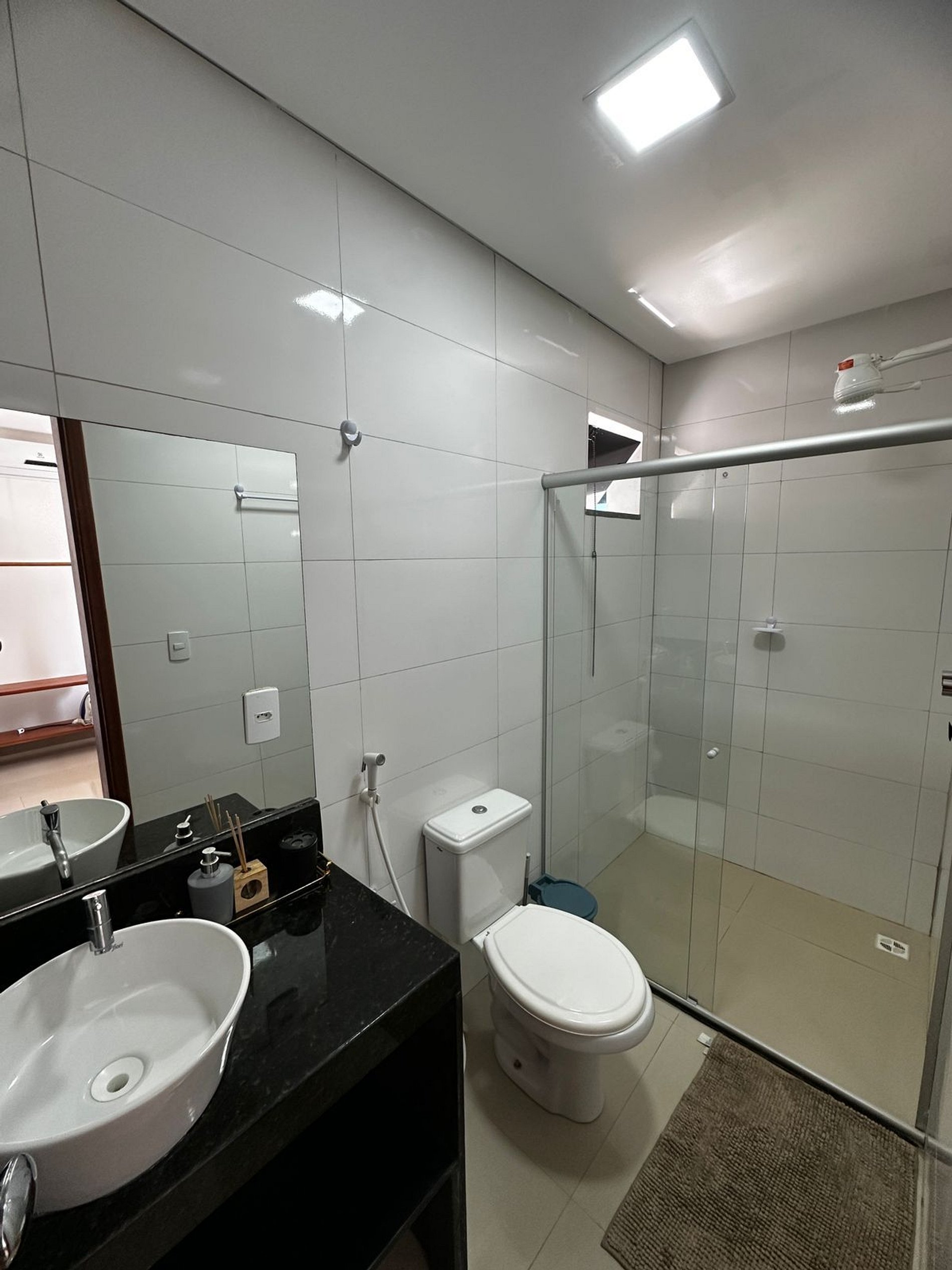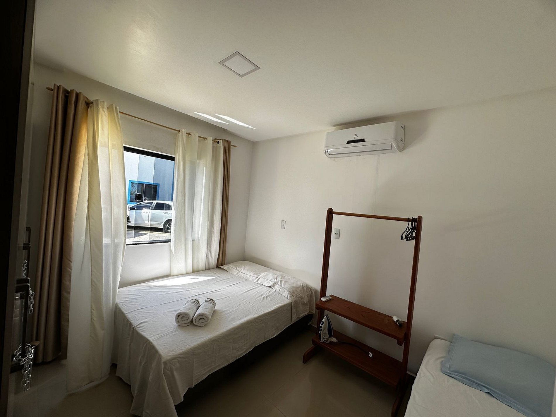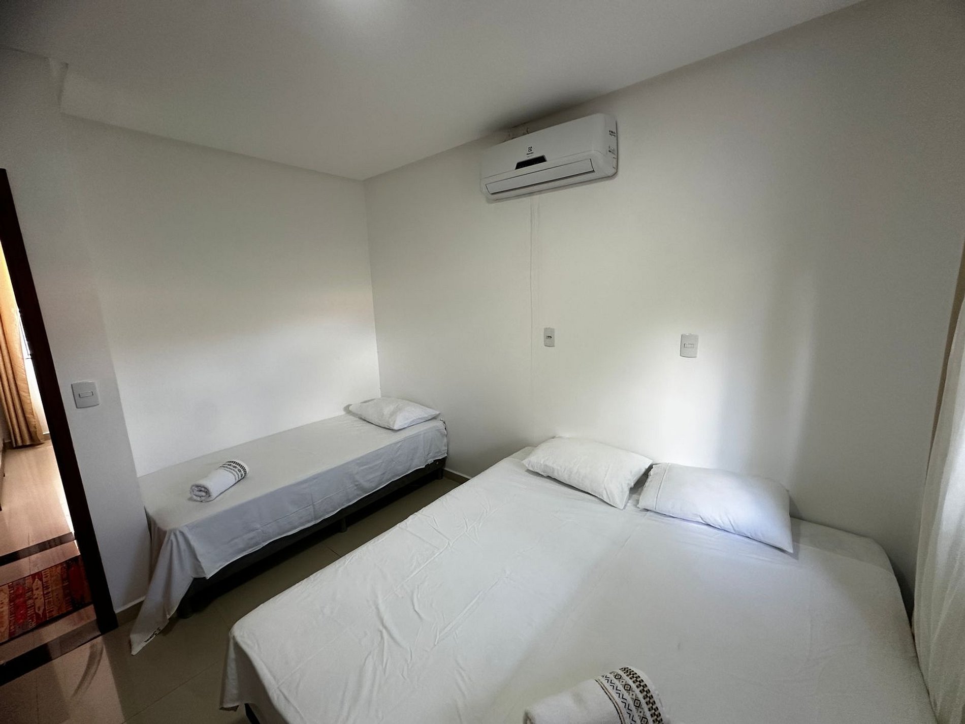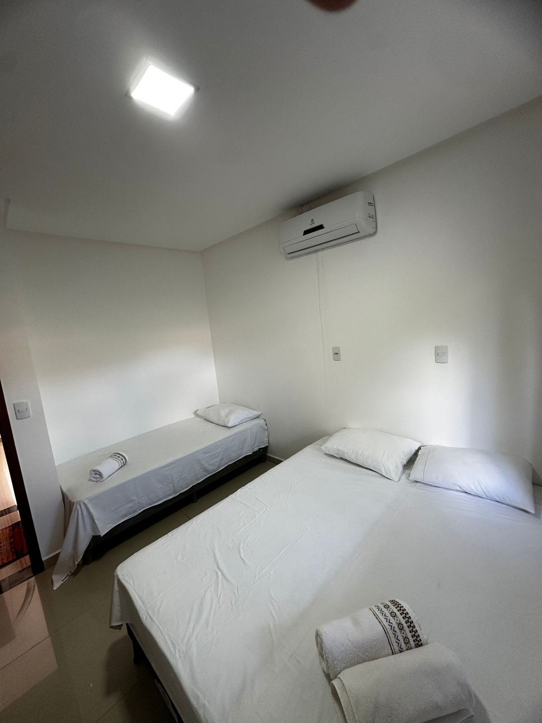 Apto tem 02 quartos, sendo uma suíte, com ar condicionado em ambos.