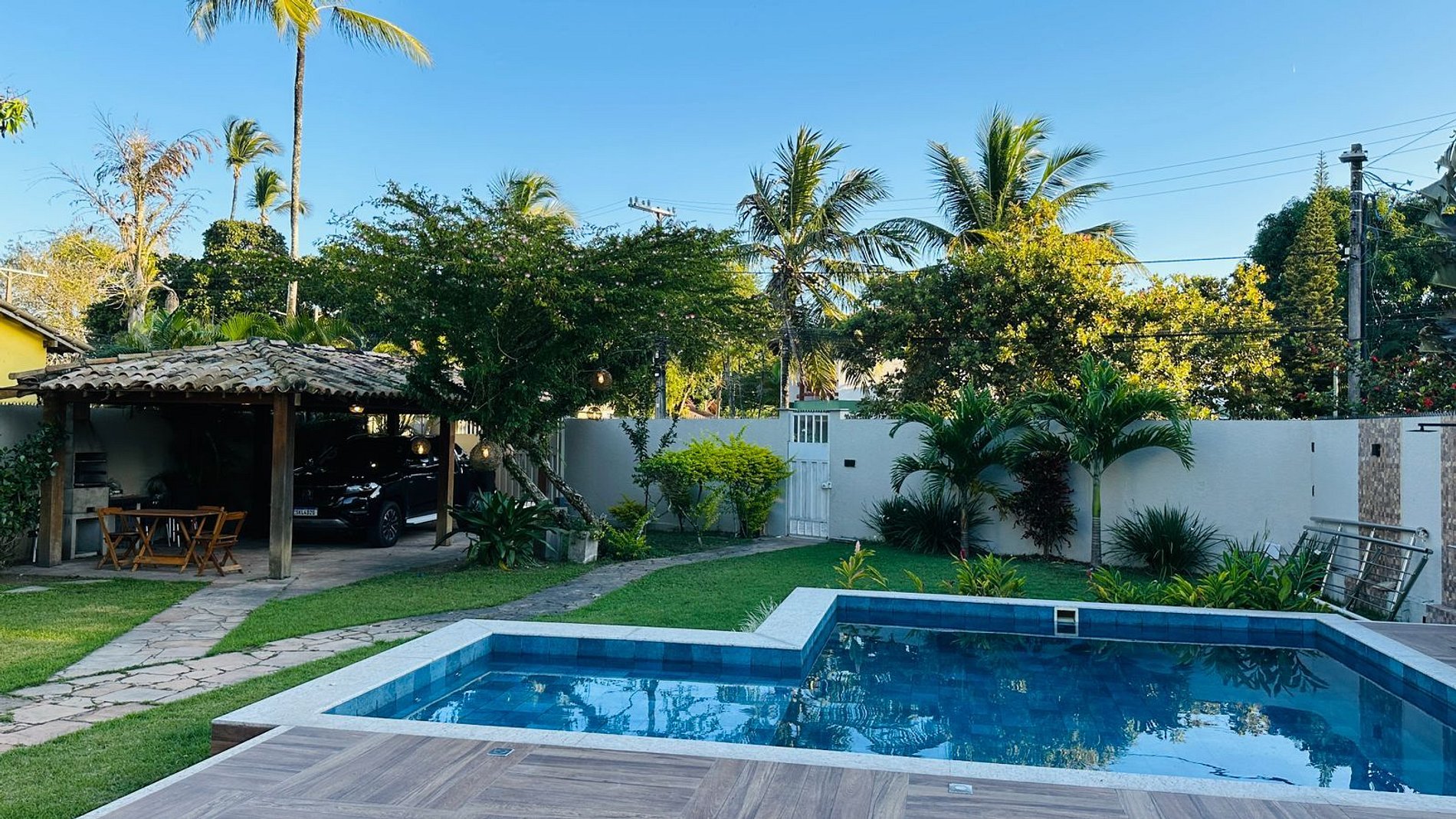 A ampla sala e cozinha são ideais para momentos em família, e a área externa conta com um belo jardim e piscina, perfeito para relaxar sob o sol. Com capacidade para até 4 carros, a casa está em um local residencial seguro e tranquilo.