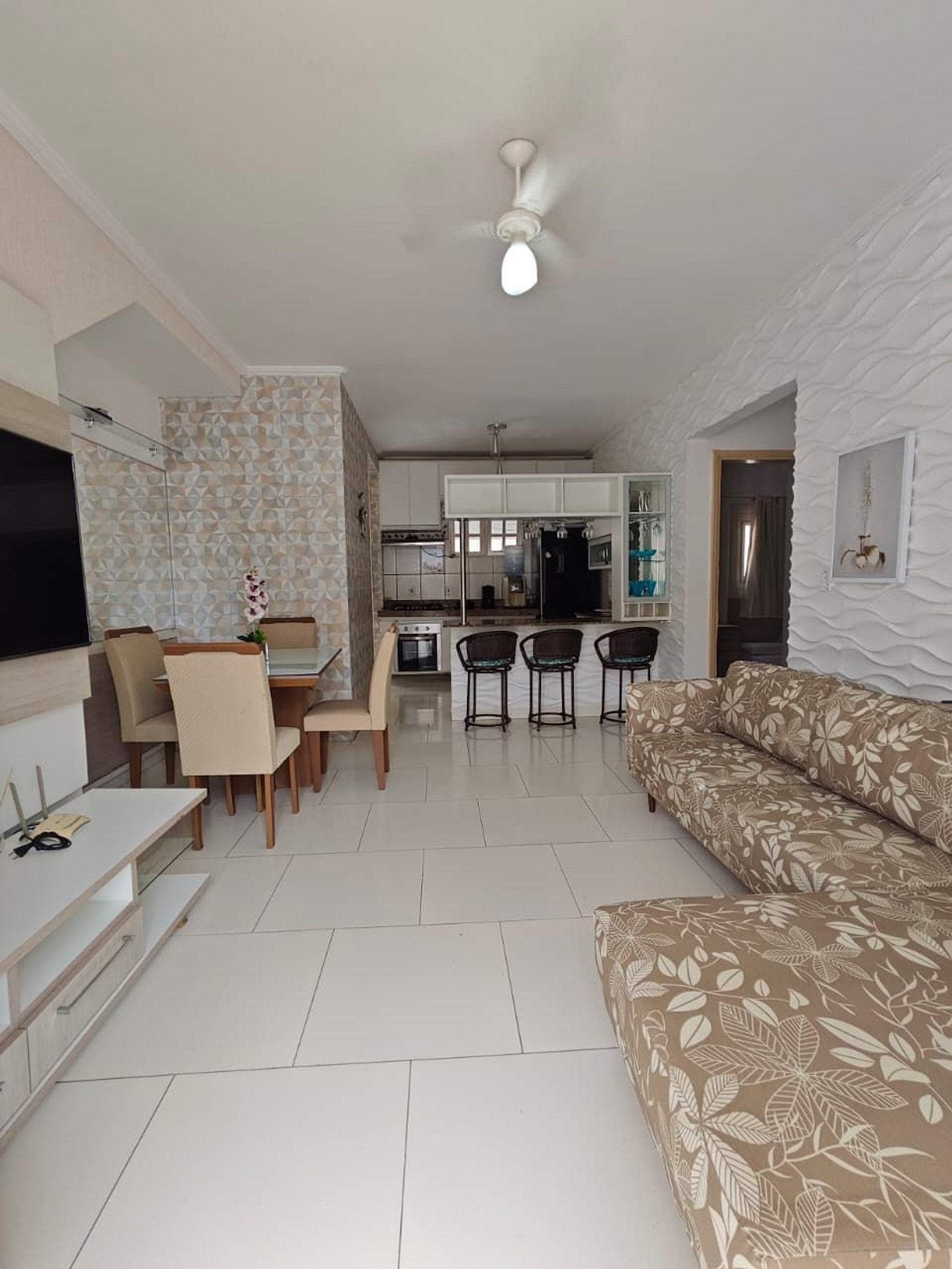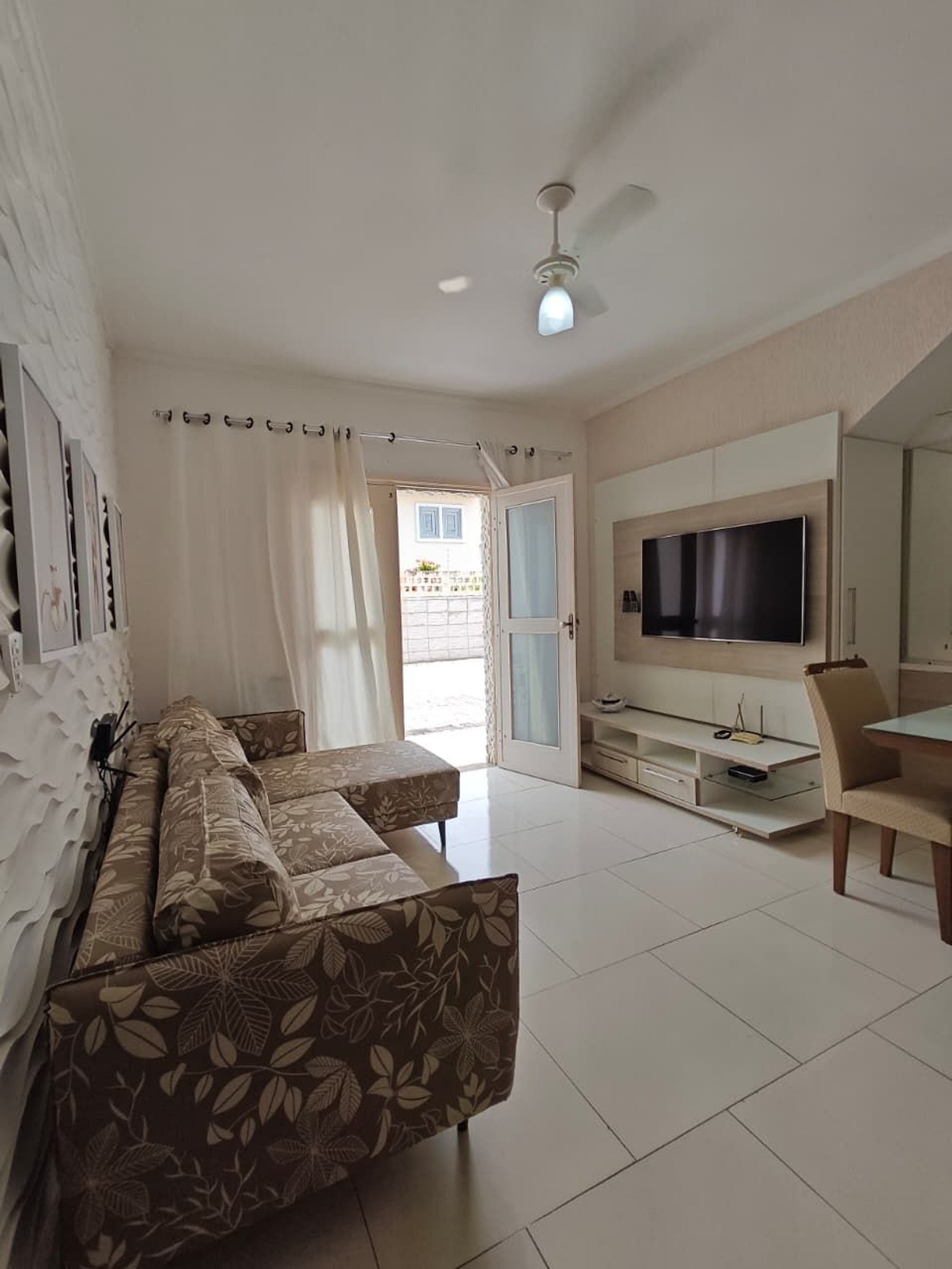 01 sala ampla com sofá, Tv, ventilador, mesa de jantar