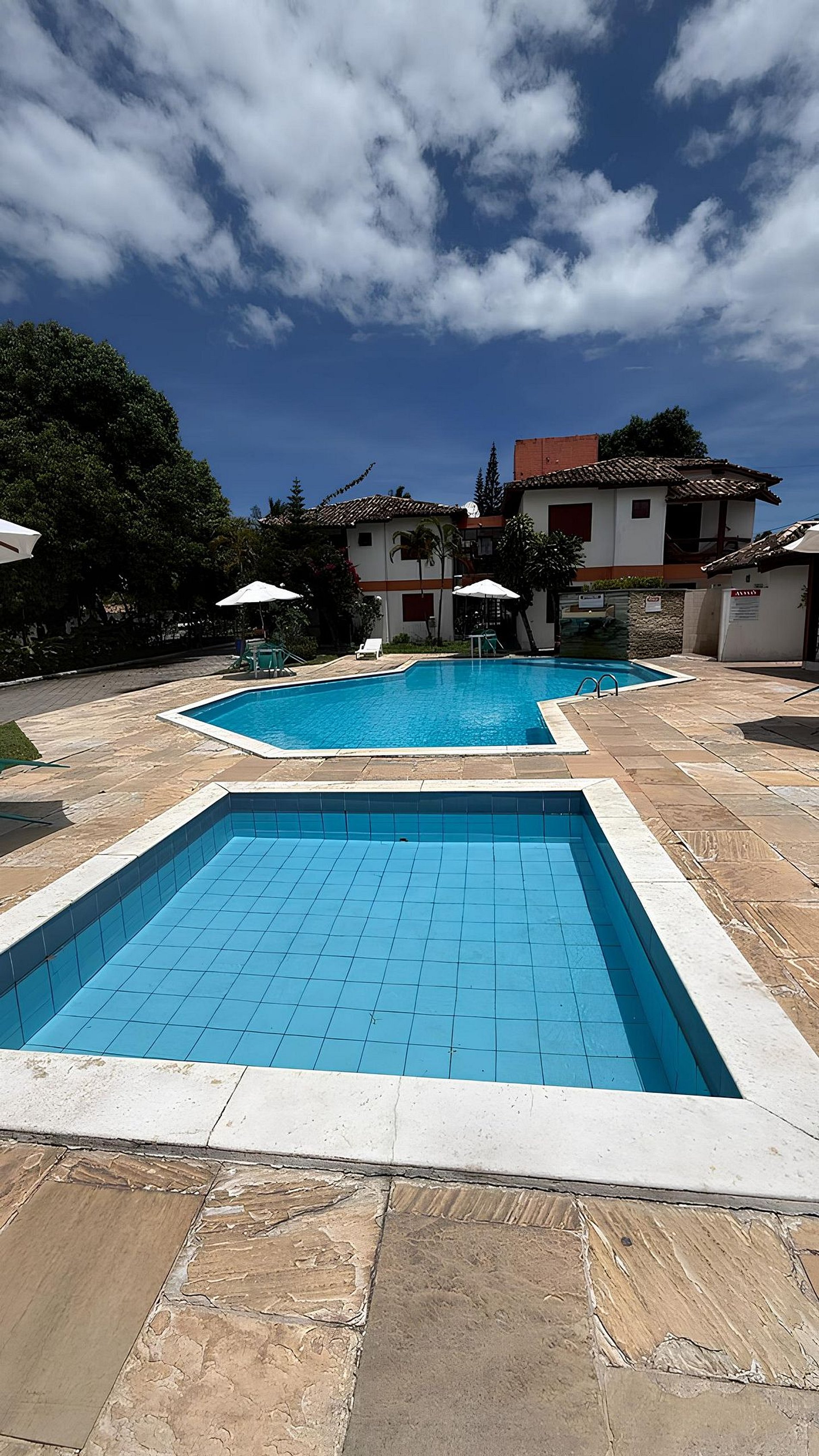 Apartamento em condomínio fechado, com piscina ao ar livre, área de lazer, sauna e estacionamento. Localizado a 300 metros das principais praias de Porto Seguro.