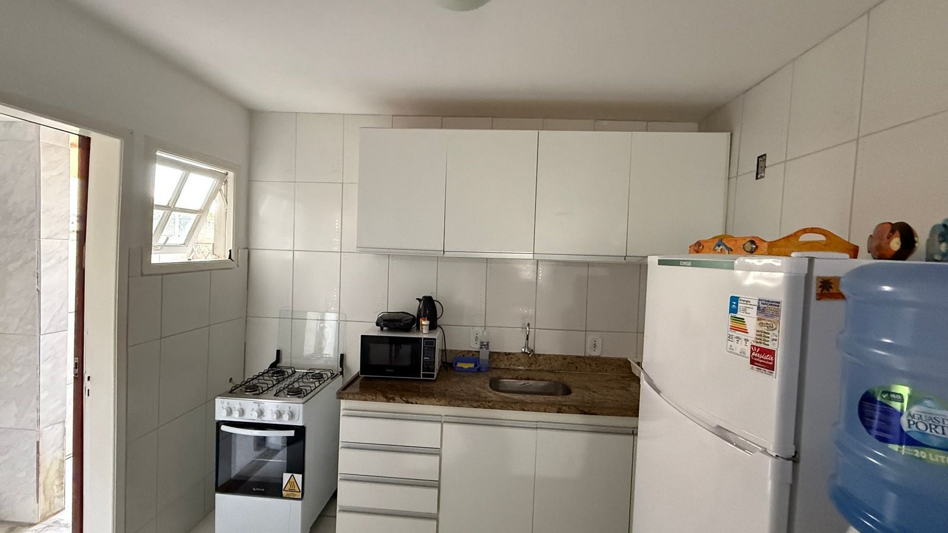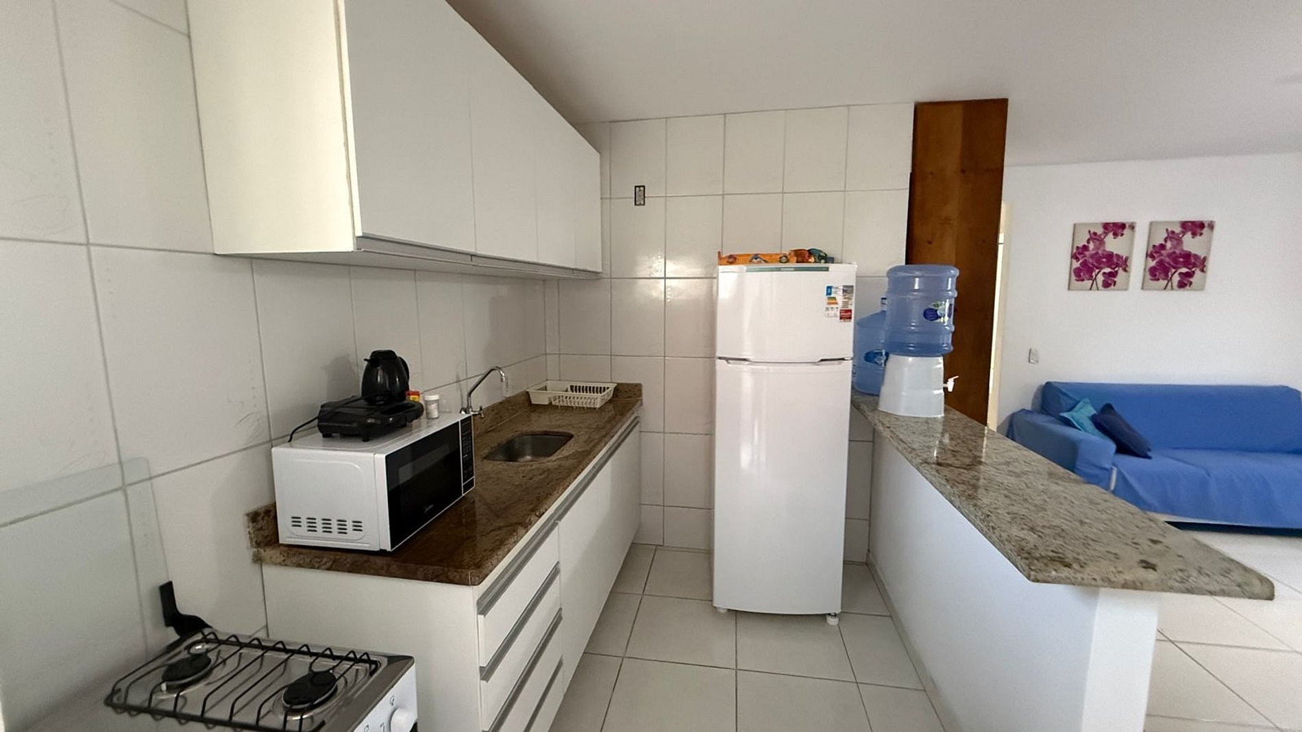 cozinha americana equipada com geladeira, fogão, tanquinho, micro-ondas, utensílios de cozinha e demais itens essenciais para garantir conforto e bem-estar durante a estadia.