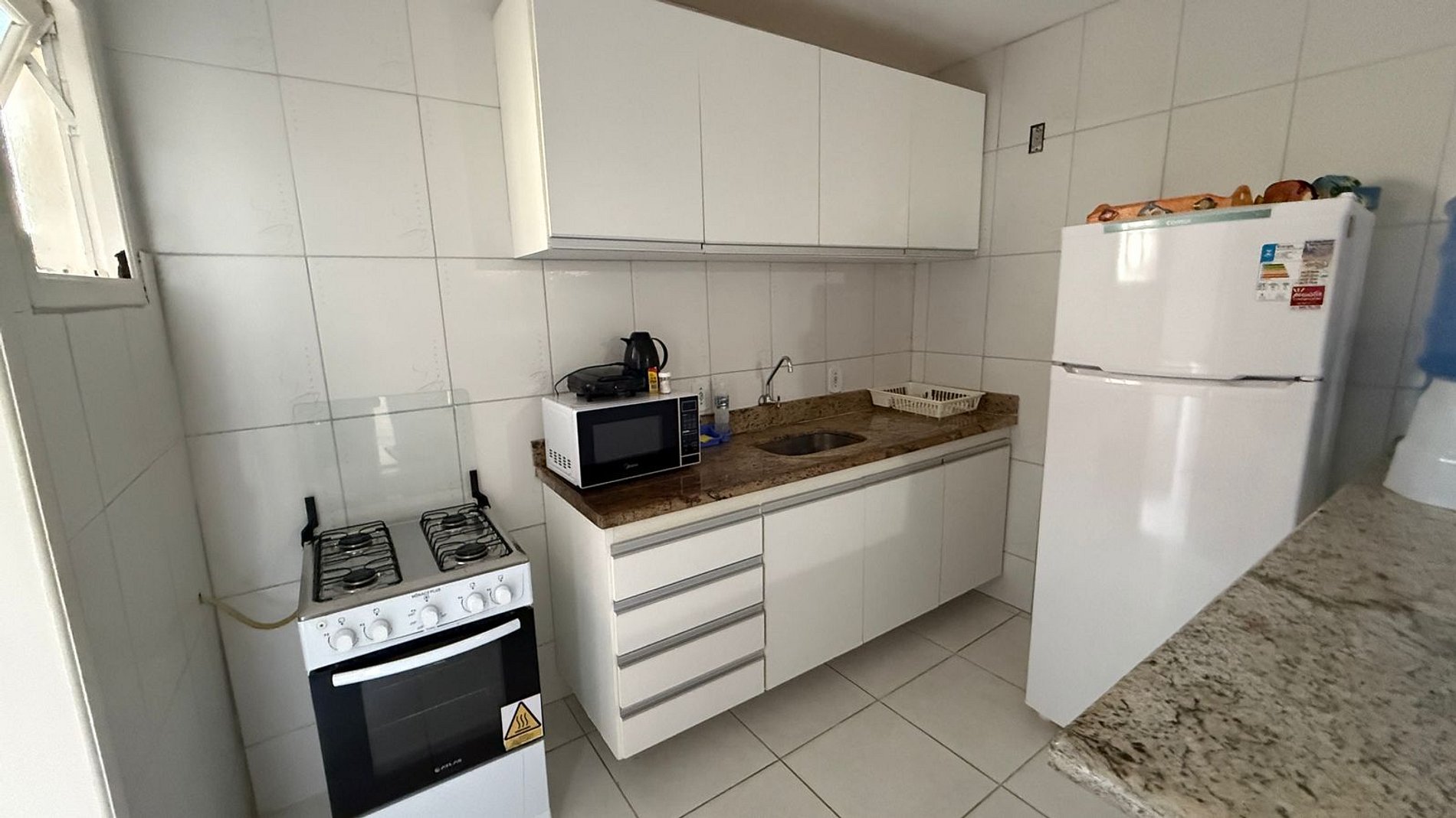 Apartamento com dois quartos, incluindo uma suíte. Dispõe de ar-condicionado, secador de cabelo, banheiro social, sala de TV, internet e cozinha equipada com fogão, geladeira e utensílios.