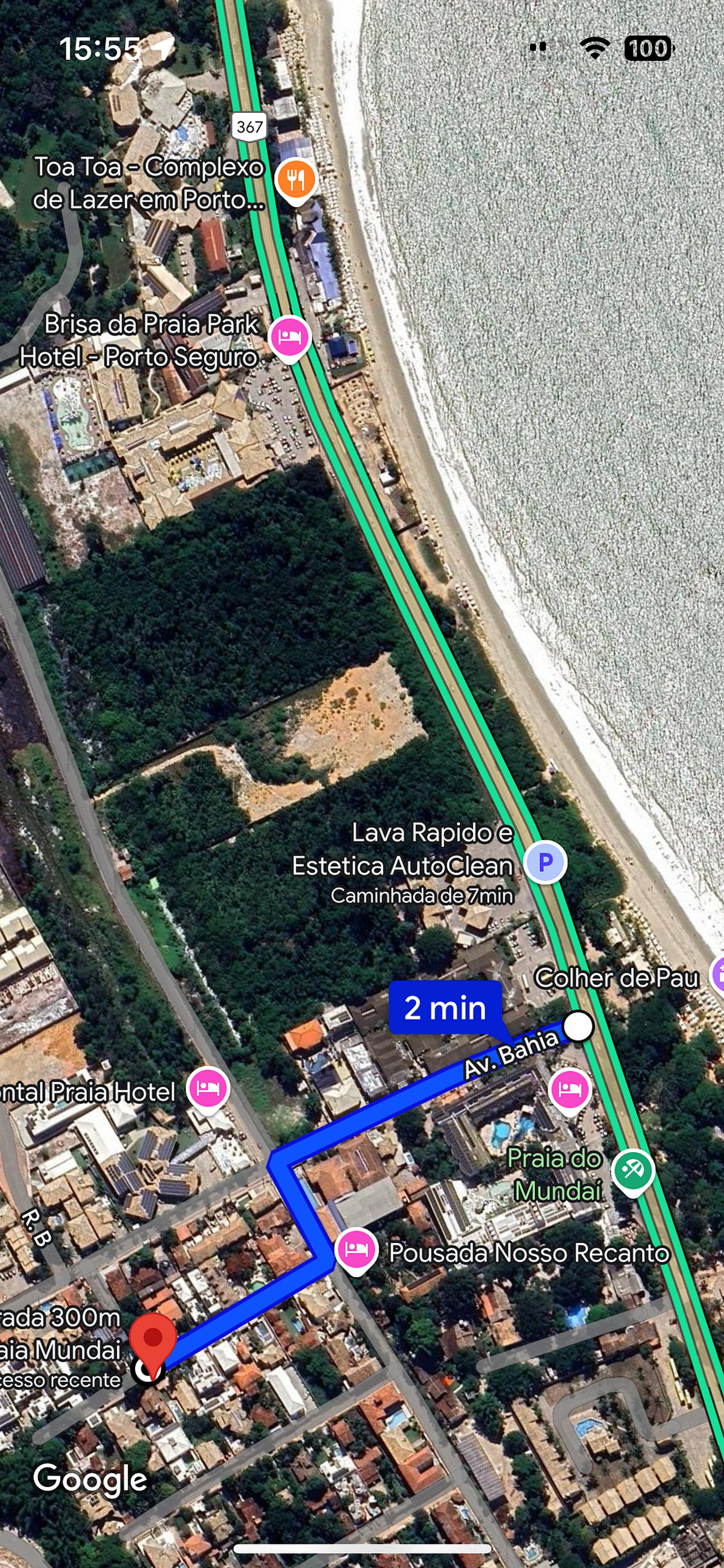 A apenas 400 metros da Praia do Mundaí, podendo ir a pé, além de fácil acesso a comércios locais, restaurantes e mercados.
