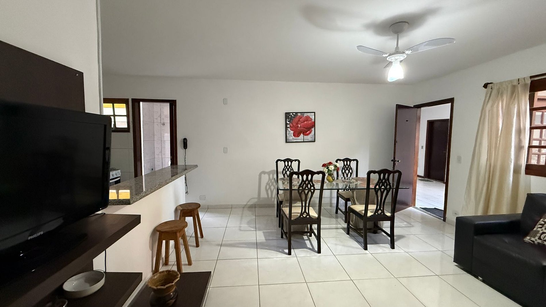 O imóvel possui ar-condicionado, dois quartos, sendo um deles suíte. Conta com internet, sala de TV,